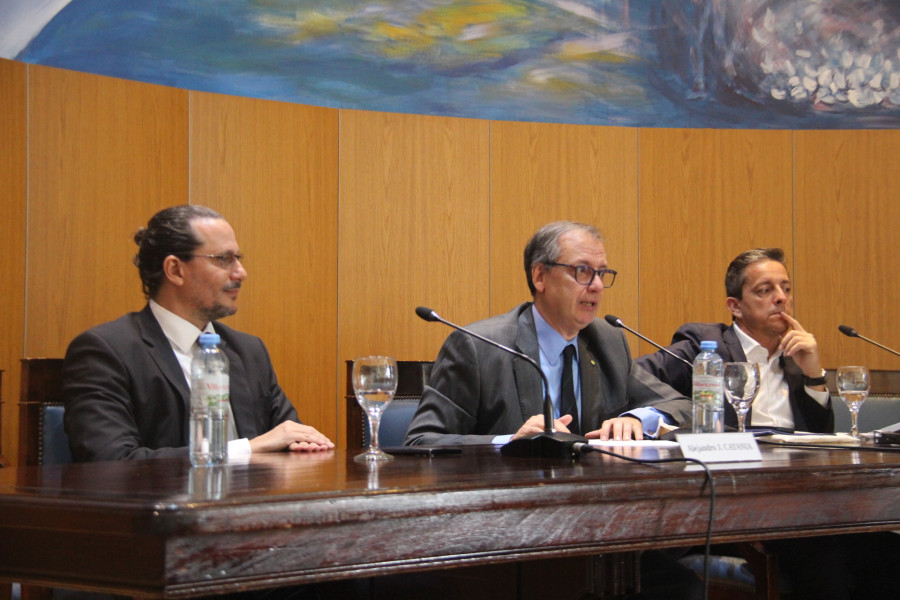 A continuación, expuso Eugenio Sarrabayrouse, quien destacó que el congreso representaba un buen mapa para pensar las problemáticas centrales del Derecho Penal Económico. A partir de esta caracterización, introdujo lo que describió como “el problema fundamental” que enfrenta la disciplina: la dificultad de desarrollar sus categorías y conceptos propios cuando, históricamente, la dogmática penal se estructuró tomando como punto de partida el delito de homicidio. Su intervención apuntó a mostrar cómo esta tensión condiciona la manera en que se conciben y se discuten las figuras del derecho penal económico, y cómo la reflexión colectiva resulta crucial para superar ese esquema heredado.