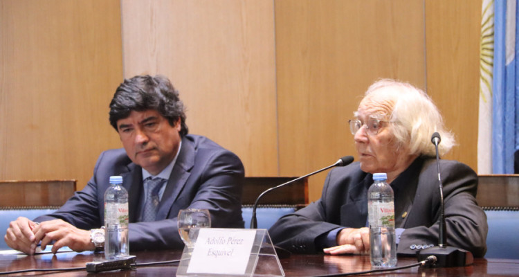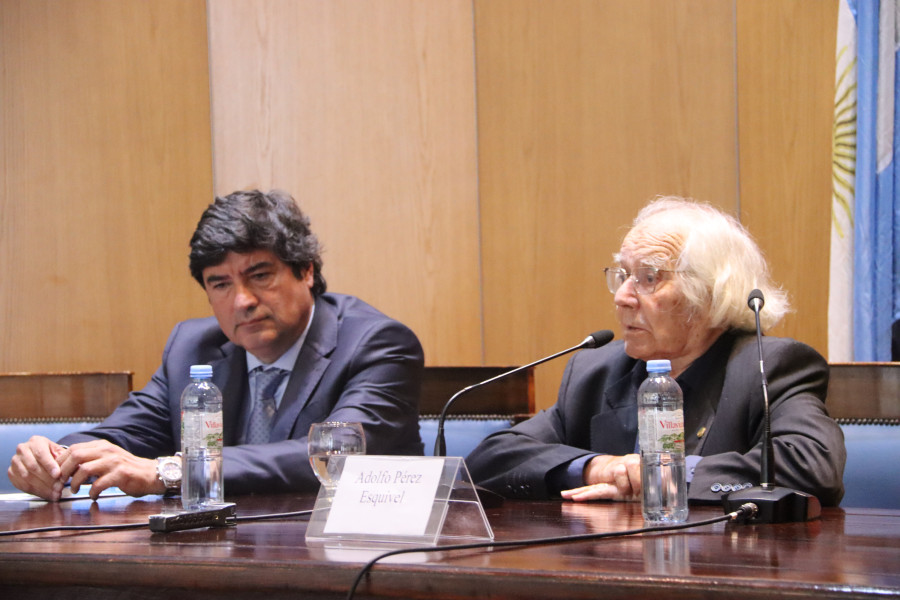 El cierre de la jornada estuvo a cargo del arquitecto Adolfo Pérez Esquivel, Premio Nobel de la Paz, quien ofreció una intervención final, moderada por el profesor Alejandro W. Slokar. Adolfo Pérez Esquivel, Premio Nobel de la Paz, compartió una ponencia que invitó a una profunda reflexión sobre los valores humanos y democráticos en la actualidad. Con un tono sereno pero firme, comenzó su intervención citando una frase de Martin Luther King: “Que si mañana se termina el mundo, hoy voy a plantar mi manzana”. A partir de esas palabras, explicó que esa imagen encierra la fuerza de la esperanza y de la resistencia, recordando que incluso en los momentos más oscuros de la historia, el ser humano debe conservar la capacidad de construir, de sembrar y de creer en el porvenir. En esa línea, sostuvo que la esperanza no es una actitud ingenua, sino una forma activa de resistencia frente a la desesperanza y la violencia que atraviesan el presente. En relación con la temática central del encuentro, Pérez Esquivel afirmó que el discurso del odio ocupa hoy un lugar central en las sociedades contemporáneas. Sostuvo que es un fenómeno que atraviesa fronteras, lenguas y culturas, y que afecta de manera directa la calidad del diálogo público y la convivencia democrática. “La palabra no es sólo palabra, sino energía”, y que en ella reside una potencia creadora o destructora: “Con una palabra se puede amar y también se puede destruir”, expresó, estableciendo una comparación entre la palabra y un arma. “Eso es precisamente el discurso del odio: el uso de la palabra para dañar, excluir o anular al otro”.