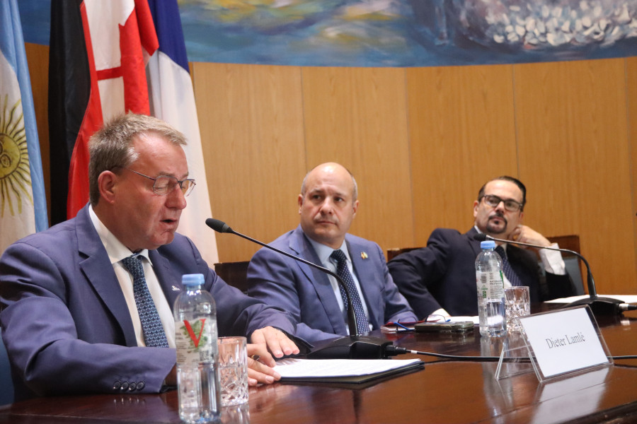 Seguidamente, comenzó el panel titulado “Negacionismo: la ley como guardiana de la memoria, un enfoque comparativo”, en el que participaron Gilles J. Guglielmi (Francia), Rainer Huhle (Alemania) y Gisela Marziotta, con la moderación de la profesora Valeria Thus. Los expositores analizaron distintas experiencias normativas europeas y latinoamericanas en torno a la criminalización del negacionismo y la preservación de la memoria histórica como deber de los Estados democráticos.