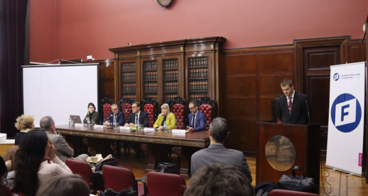 Del 27 de octubre al 1 de noviembre, en la Facultad, tuvo lugar la Séptima sesión del seminario de Derecho Internacional de la Fondation René Cassin, titulada “El derecho a la información y las libertades fundamentales en América Latina”. La actividad reunió a especialistas y autoridades académicas para reflexionar sobre los desafíos actuales que atraviesan las democracias de la región en materia de libertad de expresión y derechos fundamentales.