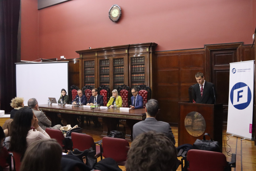 Finalmente, la vicedecana expresó su satisfacción por volver a recibir en la Facultad de Derecho una instancia de debate de carácter internacional, reafirmando el compromiso histórico de la institución con la reflexión crítica y la formación ética. “Nuestro norte en la institución es formar mujeres y varones que respeten las instituciones democráticas”, concluyó, dando así cierre a las palabras inaugurales y dejando abierta la jornada de trabajo.