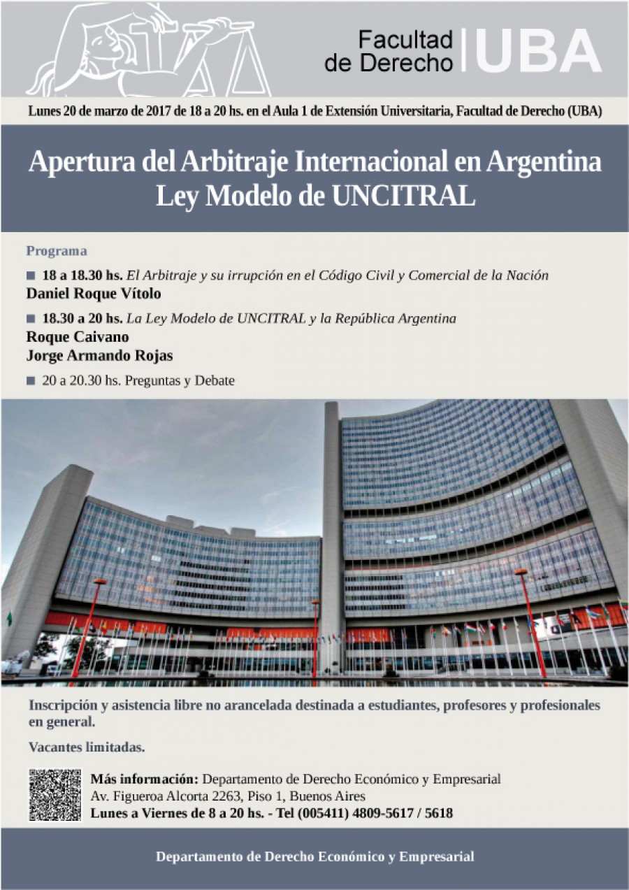 Lunes 20 de marzo de 2017 de 18 a 20 hs. en el Aula 1 de Extensión Universitaria, Facultad de Derecho (UBA)