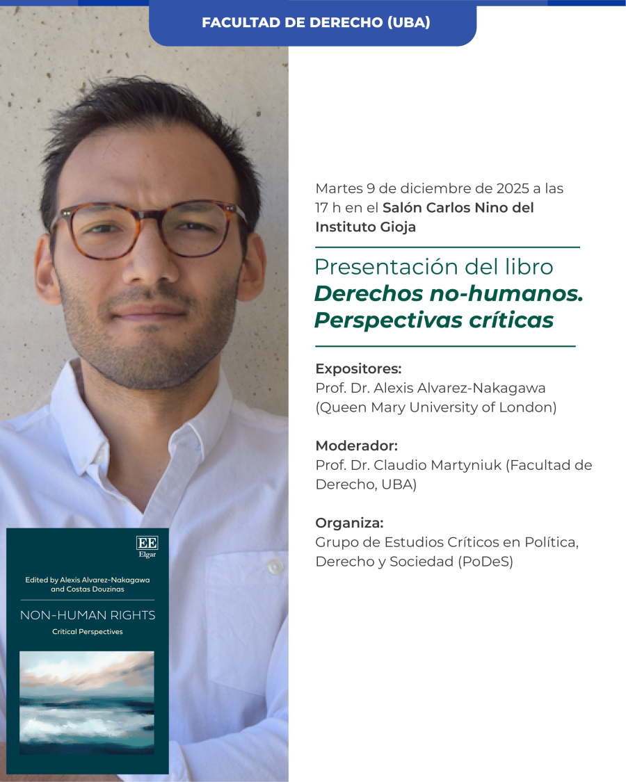 ¿Pueden los animales, ríos, montañas o incluso las máquinas y la inteligencia artificial tener derechos? ¿Qué implicancias tendría esto para nuestro mundo y nuestros sistemas legales? Alexis Alvarez-Nakagawa presentará su nuevo libro sobre la creciente tendencia a reconocer derechos y personalidad jurídica a seres no-humanos y cómo esta transformación está moldeando nuestro panorama legal y conceptual. Durante la presentación se abordarán críticamente los fundamentos, el potencial y las limitaciones de los derechos no-humanos, así como su relevancia frente a la crisis climática y el surgimiento de nuevas tecnologías.